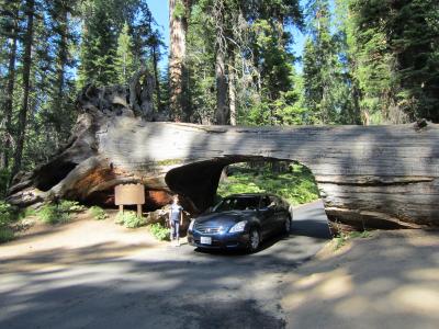 倒れたセコイアの木に穴を開けてトンネルに。