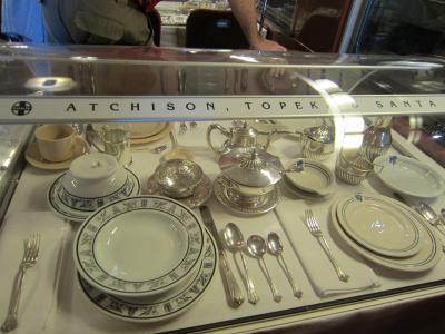食堂車では当時の食器がまばゆいばかりに、展示されていて、調理室などものぞけますよ。