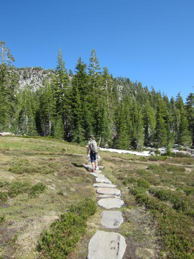 岩場を通り、草地を抜け、雪道を歩き、トレイル中はあちらこちらに湧き出る水の音が素敵です。