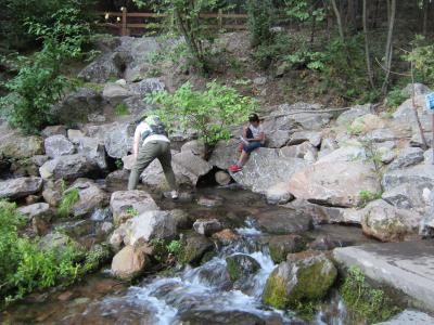 岩の間から、冷たくて美味しい、聖なる水がどんどん湧き出ています。