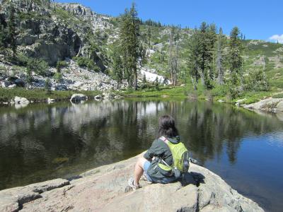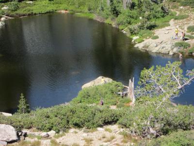 地図もなく、登山道は分かれていて、勘でいくしかない湖。