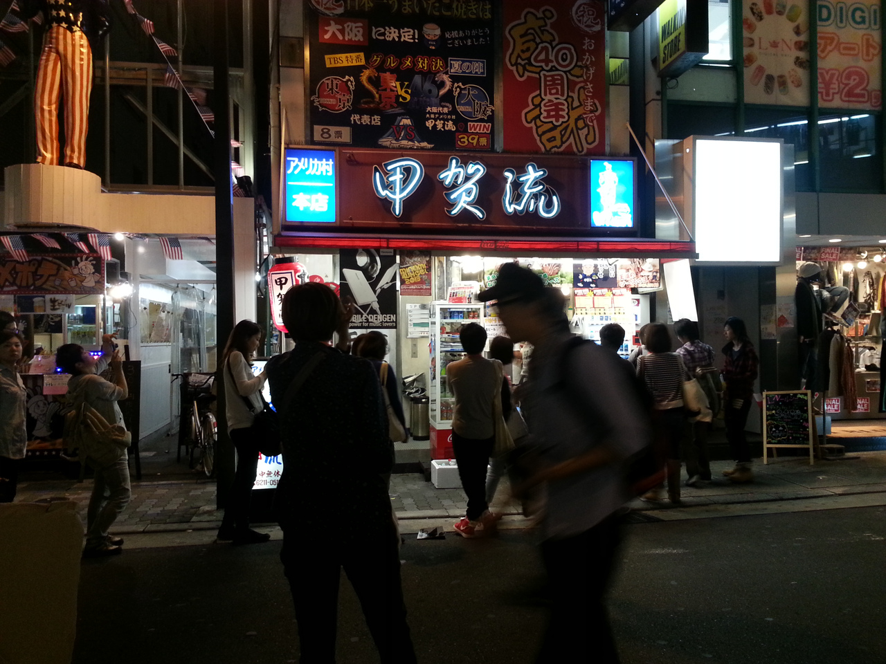 アメ村の三角公園の真向かいにある人人気のたこ焼き屋さん。甲賀流のたこ焼きを買って、三角公園で食べている人を沢山見掛けます。人気店なだけあり、いつでもアツアツのたこ焼きが食べられます。ネギが好きなので、ネギたっぷりかかったたこ焼きが個人的にオススメです。