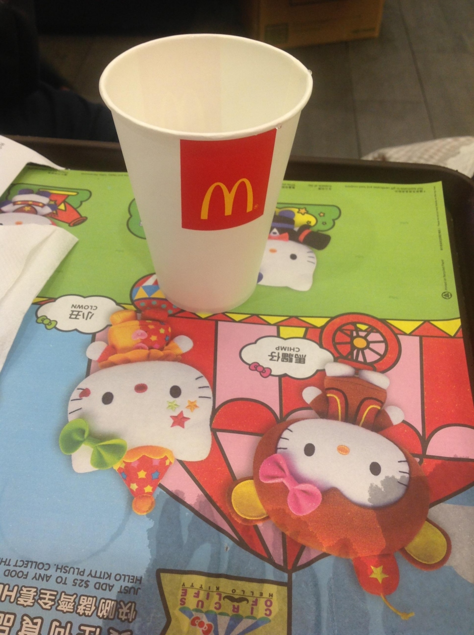 香港のマクドナルドにはご飯ものとパスタのスープものがあってびっくりしました!また注文もせずに本や新聞を読んでいる人が多くてびっくりしました。他にも店内にATMがあってびっくりしました。薬を飲みたくてお水を貰ったらお湯が出てきました。国によってこうも違うんですね。