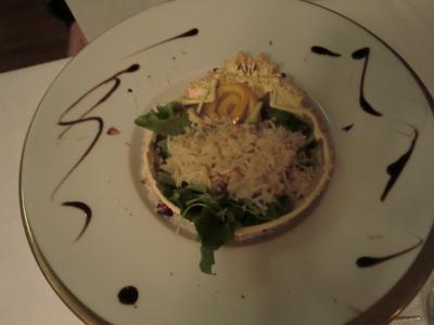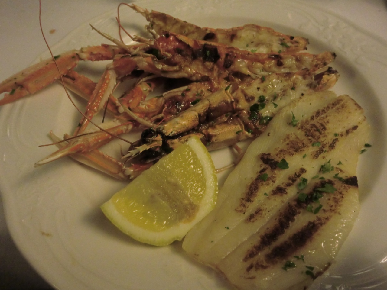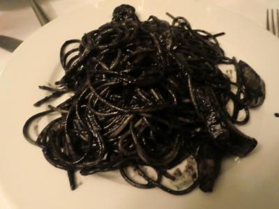 お昼にイカスミパスタとシーフードのグリル、ティラミス、サラダとパンをいただきました。イカスミパスタとティラミスは美味しかったです。ツアーで行ったからか席が狭くて窮屈な中の食事でしたが今回のイタリア旅行の中で1番のお店だと感じました。