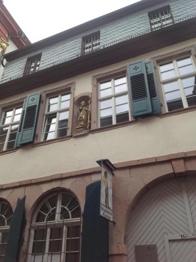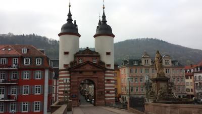 洪水で何度も壊されていましたが、カール・テオドールによって今の丈夫な橋が作られたそうです。ずっと眺めていたい景色!本当に素敵でした!橋のそばには学生さんが作られたヒヒとネズミがいます。天気がいいとここからハイデルベルク城が綺麗に見えます。