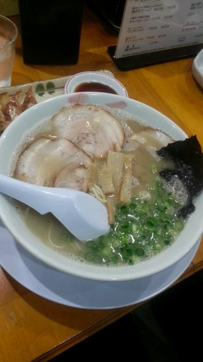 豚骨ラーメンに200円プラスでセットに出来ます。餃子4個とライスかおにぎり、おつけものがついてかなりお得です!お店に入った瞬間、かなり豚骨の匂いがしました。スープは結構豚の匂いが気になってしまい、個人的に好みではありませんでした。- 旅行時期