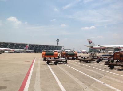 かなり広いです。香港からの乗り換えで使用しました。香港ドルも使えますが、お店に香港ドルがないと元でかえってきます。お土産屋さんはたくさんありますがどの店員さんも感じが悪いです。お土産を買って小分けの袋が欲しいと言ったら断られました。