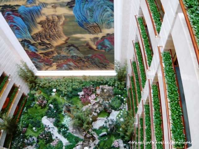 エレベーターホールにある、16階分の壁を使った山水画は迫力あります。