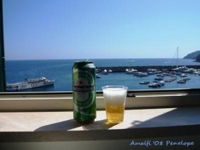 窓を開けると地中海が広がり、アマルフィにいることを実感します。