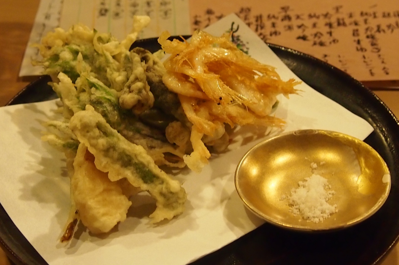 山菜の天麩羅を注文後白海老のかき揚げが目に留まる