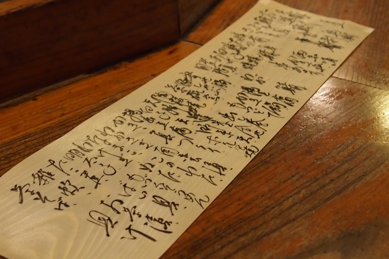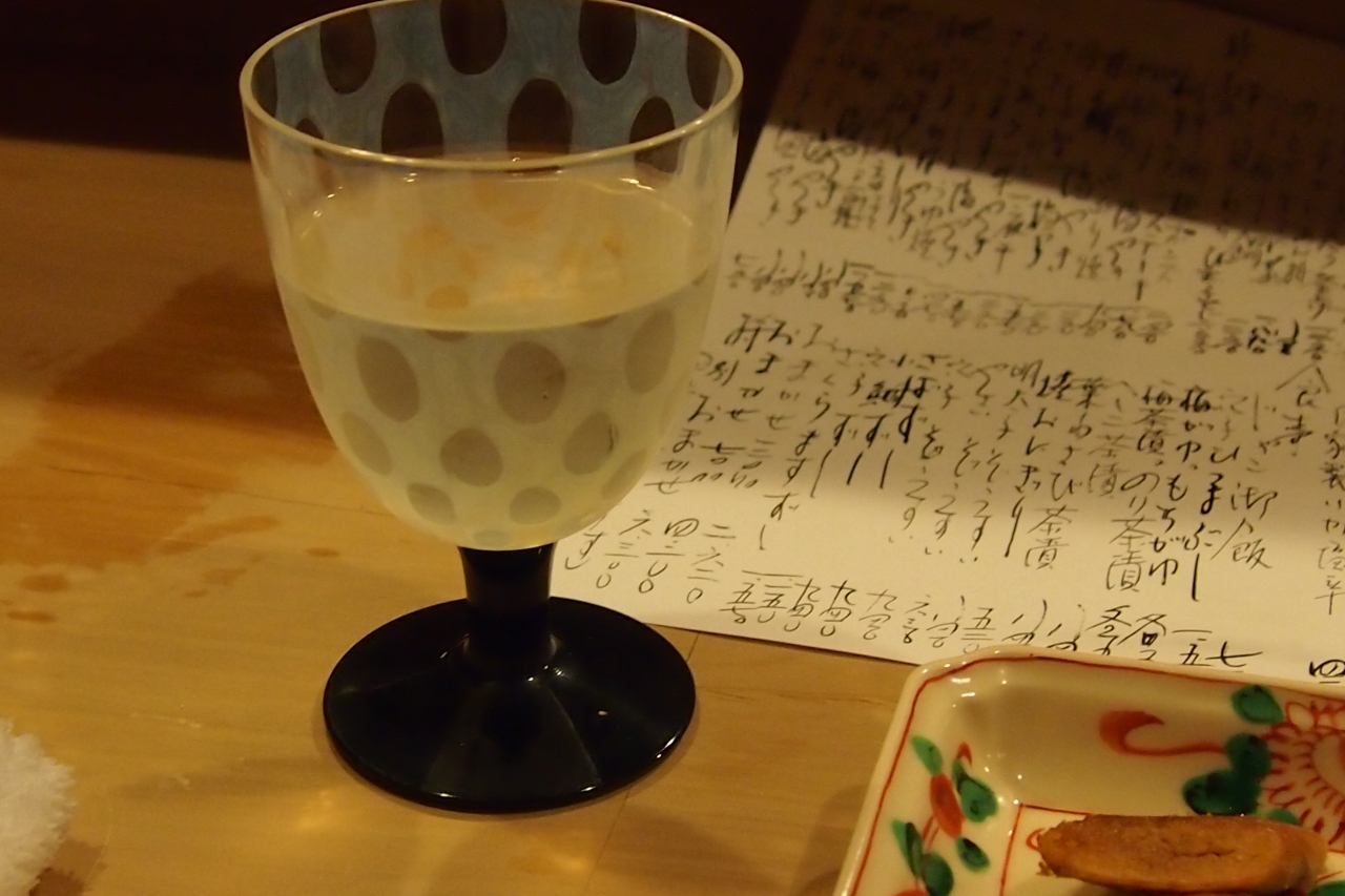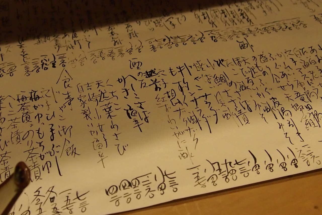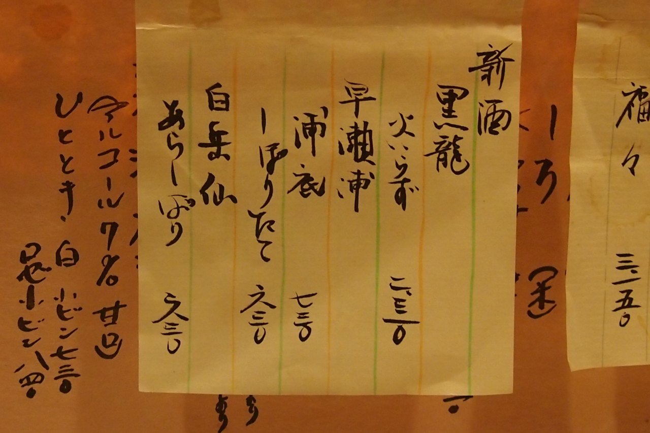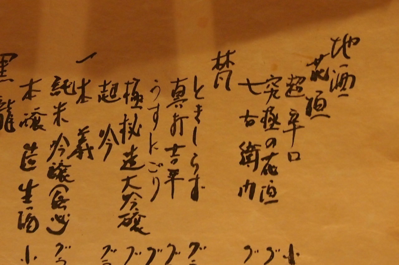 和紙に書かれた酒の品書きに目を通す、さてと・・・ココはやはり地酒「七本槍」の吟醸を冷で頂こう。