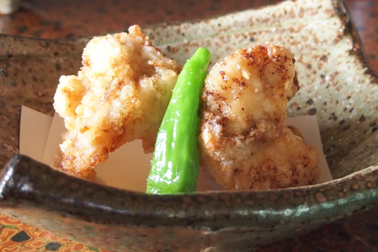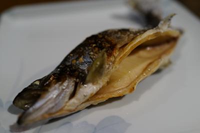 稚鮎の天ぷら:流石に活稚鮎ではないが、子鮎とは違った若鮎の味が楽しめる