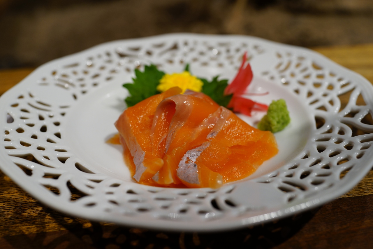 琵琶マスのお造り:上品な脂が乗り、鮭とは全く違った味わい、酒が進む