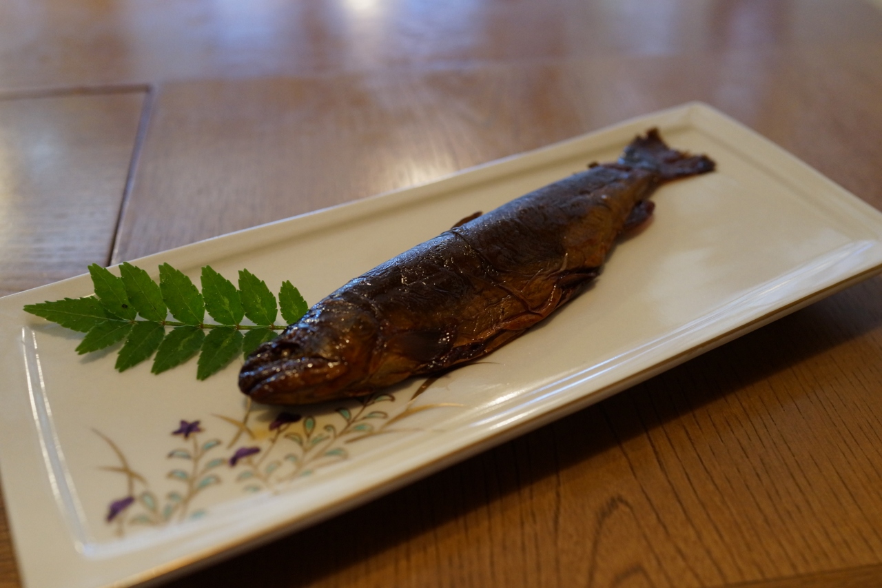 炊き上がったばかりのヤマメの甘露煮は春吟醸に初夏の旬、季節感のある美味い肴