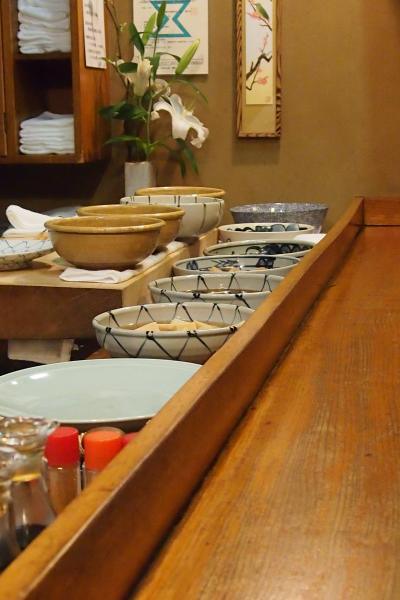 カウンター左端、太田氏の百名盃の前の前の席へ通される、カウンターは五席、程よい広さだ。昼に地ビールは十分に堪能したし、今夜は料理を味わいたい、端から酒でいきますか♪