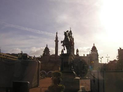 バスの窓越しに、ジョージ広場と市議会議事堂を写しています。