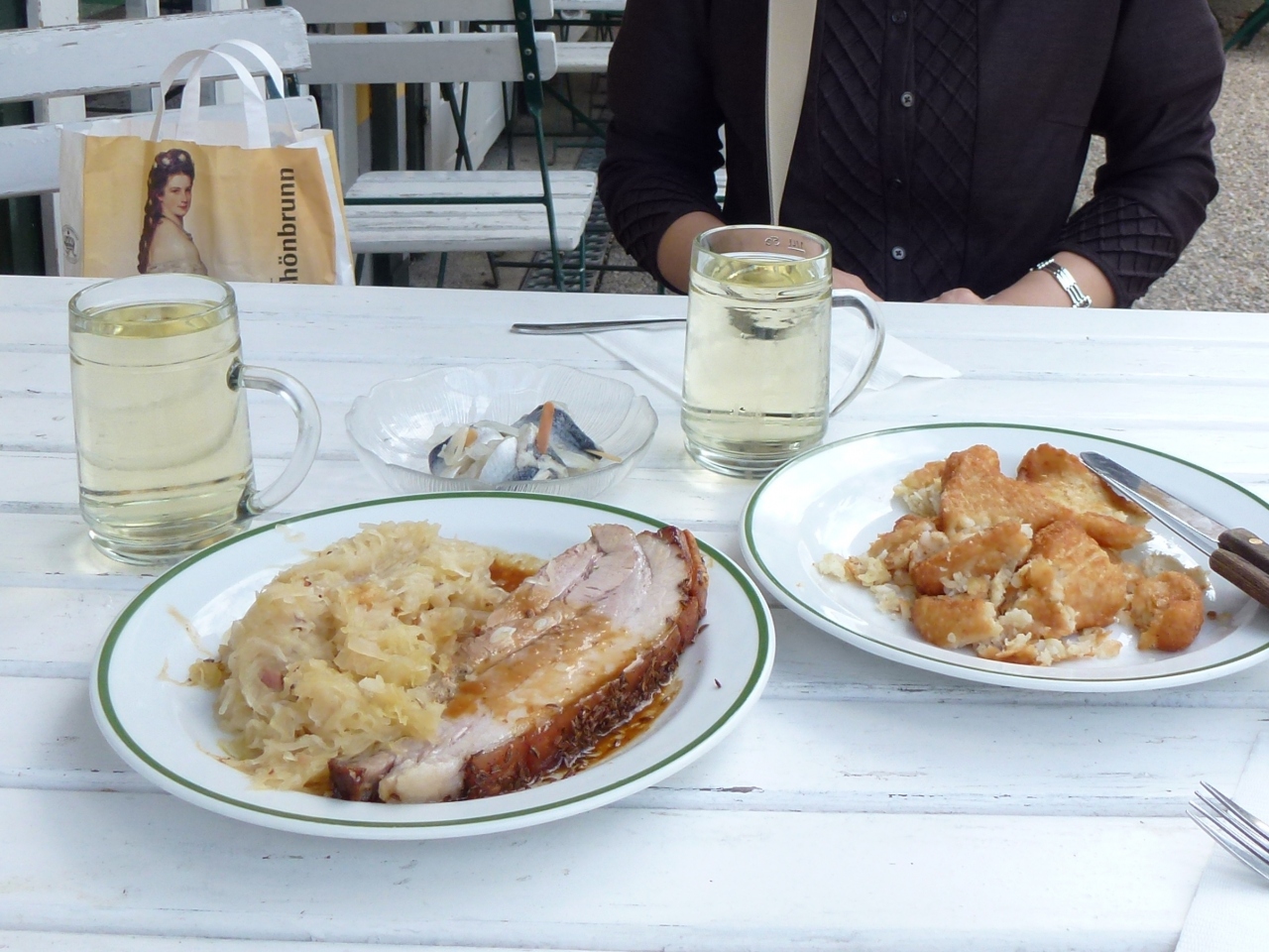 ウィーンに向っているとき、機内誌のホイリゲに関する記事を見つけたのでそれを参考に行ってみることにした。ホイリゲは「今年の(出来立てワイン)」ということらしい。訪問時は若干時期は早かったので今年のワインは飲めていない。注文の仕方は案内書通りだったが、演奏者にどれくらい払えばよいかわからないのでこちらに演奏者が来ないうちに退散した。日没前に入り屋内外全く混んでいない状態。出来立てのワインがあると店頭に杉の葉を束ねた飾りが出ているそうで前述通り時期は早かったのでどこの店にもそんな飾りはなし。