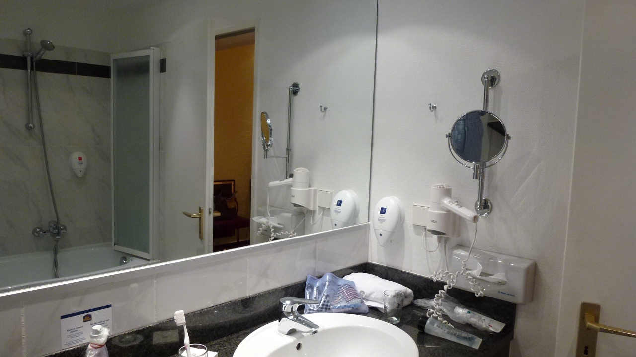 ツアーで利用。前日はグラナダ街中のホテルでかなり窮屈な思いをした。それに比べこのホテルは郊外にあるので部屋・バスルームはゆとりの大きさ。ショッピングモールが向かい側にあるので便利。ツアー同行者が訳あり激安のブルゾンを買ったので見せてもらい何処製か見たらスペイン製。