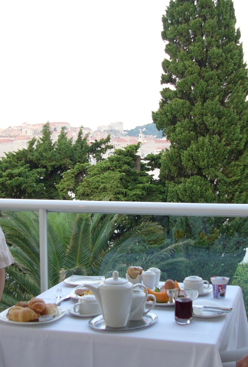 ツアーの3日目に宿泊したホテル。当初、新港にあるホテルに宿泊予定であったが事情によりこのホテルに宿泊。ロビー、客室は伝統的なインテリアがあるように感じる。斜面に立地しているので大体客室の窓はアドリア海に面している。朝食は大きなテラスにテーブルがあり潮風に当たりドブロブニクの街並みを見下ろす贅沢な光景。