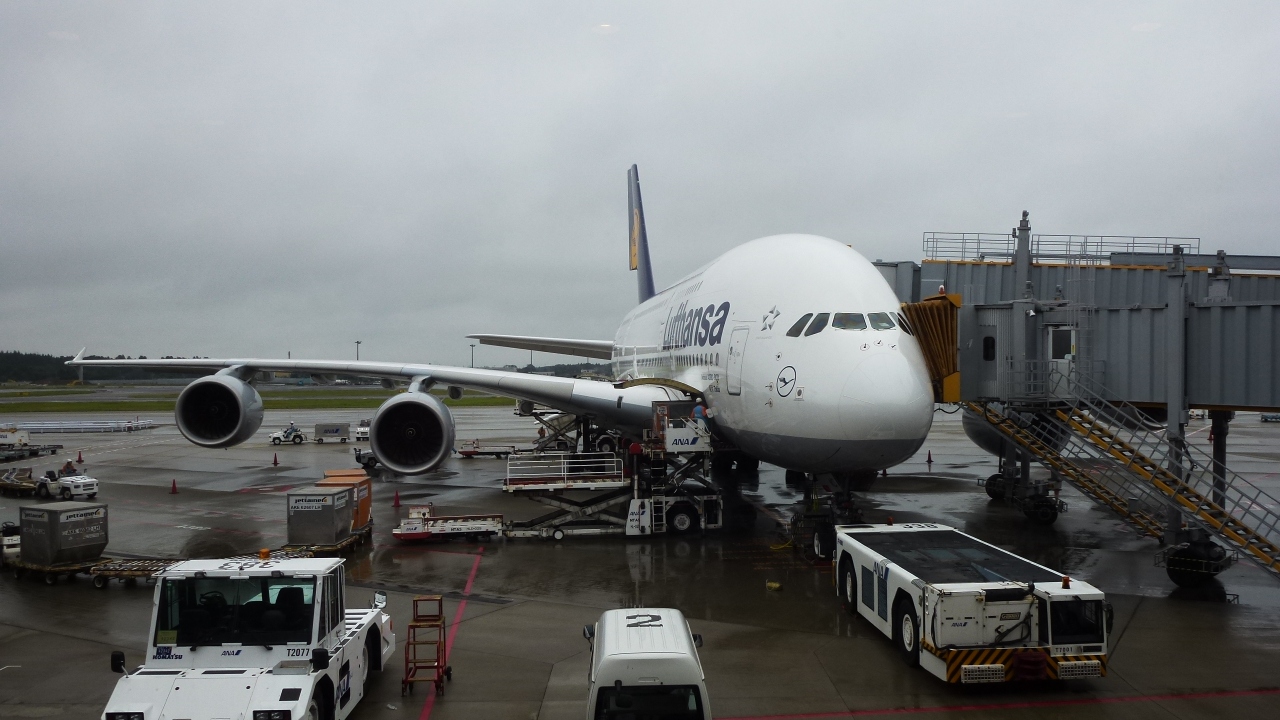 ツアーで利用。搭乗券は集合時の最初に添乗員から受取りわずらわしいセルフチェックイン操作はなかった。荷物を預けるときに列を作るが数分のこと。成田での搭乗時、満員乗客500人ほどをシート番号でグループ化し順番に誘導した。帰路の場合FRAではそのような誘導がないため搭乗口で長蛇の列をなしていた。A380機内に関して、USBのコネクタがひざ掛けの下にある。音楽や映画のファイルを持ち込めば視聴できるようである。このことはホームページに書かれていないで、機内のシート前面のモニターで初めて知る。よってUSBメモリーを持ち込んでいないので試せていない。コネクタの位置確認だけ。映画ソフトは豊富で新作から旧作まで揃い往復で5作を見る。どの映画が日本語対応かどうか機内誌で確認してからオンデマンドで見ると効率的。