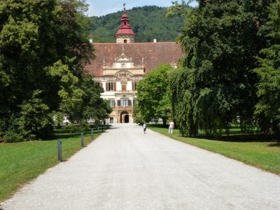 グラーツ駅から旧市街と反対の方向にある郊外の城。トラムの利用が便利だが訪問当時グラーツ駅周辺道路が工事中でトラムが部分運行。代行バスとトラム?を利用。入り口がトラムの停留所から分かりにくい。詳細は旅行記を参照。城内、上階内部はガイドツアーを利用する。予めウェブサイトで城のことについて調べておいたので英語の案内の理解に役立った。