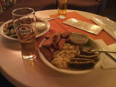 Kursalon で8時から開かれるコンサートの前に軽く食事をするために利用。昼間ウィーンのリンク内を見て周り一旦ホテルに帰り休憩。その後ホテルに近いグラーベンでレストランを探していた。店頭に円筒状のメニューがありそれを見ていると「スイッチを押すと回転する」と店員に教えられる。写真入のメニューなので分かりやすい。この店はグラーベンの路上でカフェも営業している。写真のメニューを見ていると安っぽく感じなくも無いが味はそこそこ悪くない。ウェブサイトにメニューが載っているので参考まで。