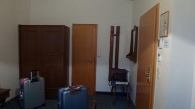 ドイツ周遊13日間ツアー2日目のホテル。前のホテルがあまりにも狭かったのでどうなるかと思ったがほっとする部屋の広さ。このホテルは古風なドイツのホテル形式。一階はレストランになっている。部屋にはクローゼットはなく木製ロッカー(洋服箪笥)あり。夏場にエアコンを利用する場合は、有料のよう。無料Wifi利用可能。ホテル入口は階段がありスーツケースを持ち上げるのが大変。