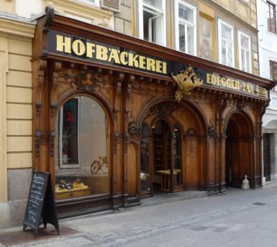 ウィーンから日帰りでグラーツ観光。 先ずエッゲンベルグ城をみて、シュロスベルグに上り最後に旧市街を見学。シュロスベルグから蛇行した道を下りてシュポアガッセを中央広場方向に下りホーフガッセに入る。少し行くと右手に入り口に金箔の双頭の鷲を掲げた店がある。これが宮廷御用達パン屋。