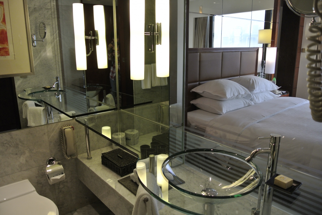 お部屋はタワーのコーナーだったせいか2間(リビングルームとベットルーム)あり、広々しており快適に過ごせました。バスルームはバスタブと洗い場付きのジャパニーズスタイルでこちらも広々してます。他のシェラトンホテルではターンダウンサービスを受けたことはありませんが、こちら香港のシェラトンではターンダウンサービス付きでした。- 旅行時期