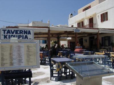 ペリカンのペドロ君がよく出入りするレストラン「NIKOS」の前にあります。ミコノスの白壁の迷路の中このお店を探すのには結構迷ってしまいました。ギリシャ料理の定番をワンプレートにした「ギリシャプレート」は、家庭料理的な味付けで、ミートボール、ムサカ、スタッフドトマトなどボリューム満点で10euro弱と良心的なお値段です。とってもおいしく頂きました。