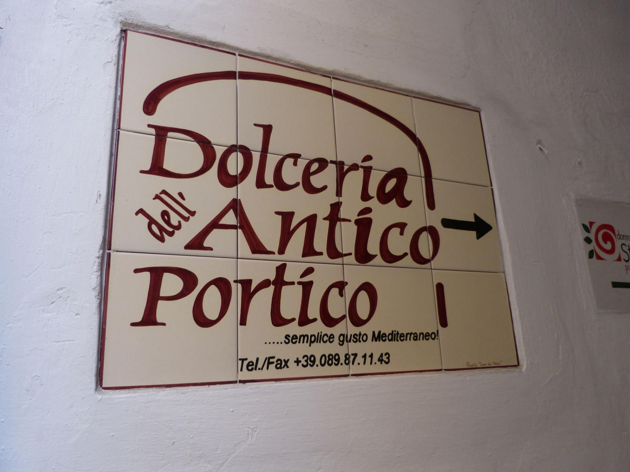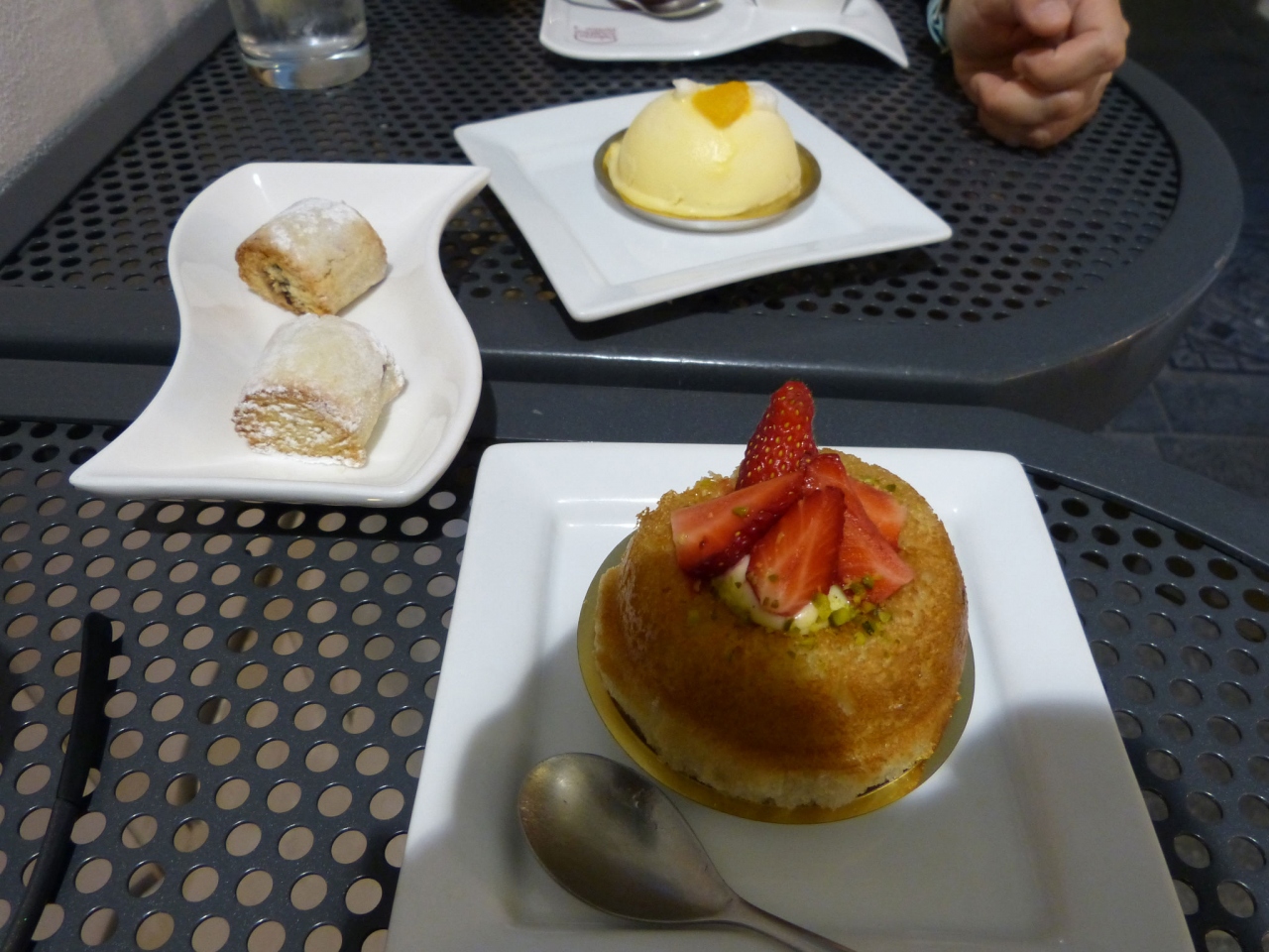 メインロードを1本入った、白い漆喰で覆われたアーケードのなかにあるお菓子屋さん。バールも兼ねているので、その場で食べられます。