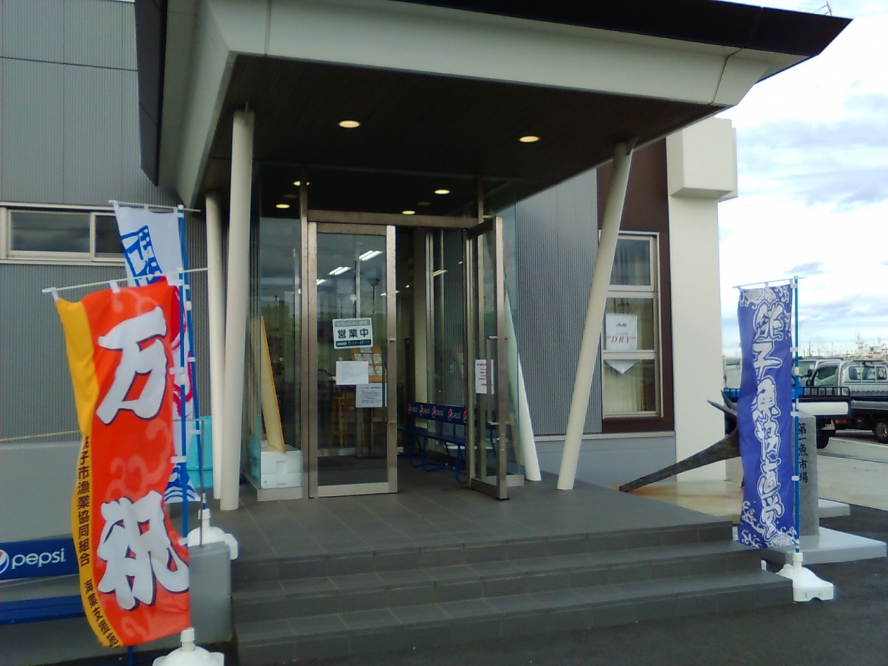 銚子漁港第1卸売場・中央市場の建物の中にある食堂で、入り口は道路に面しているので、漁協関係者でなくても気軽に入れます。