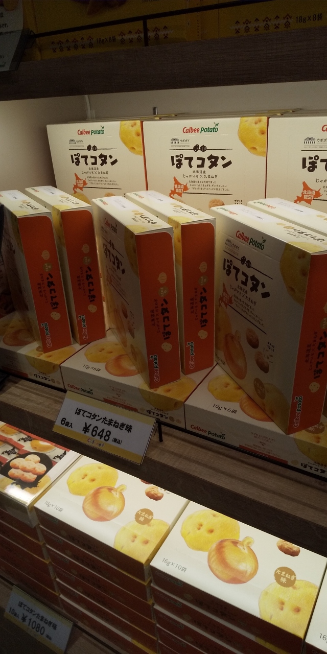 カルビーのお膝元でウインドー越しに調理風景までデモンストレーションしているお店。小さいコーナーですが、千歳空港店限定のオリジナルボテトチップスやお菓子があります。お徳な詰め合わせや2000円以上でトートバッグが貰えたりします