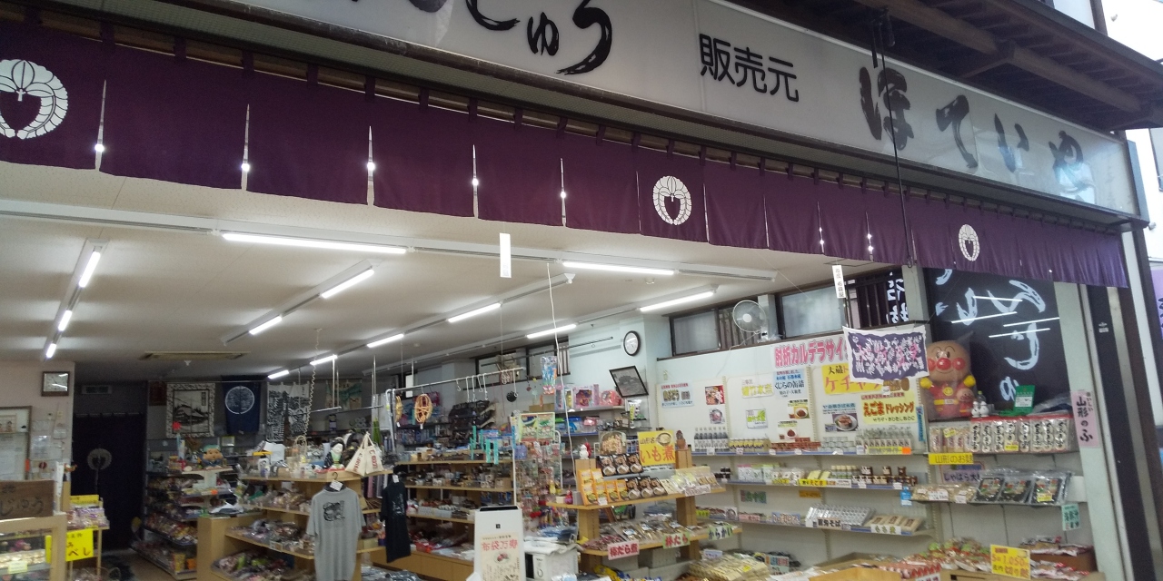 肘折温泉の中心部のお土産屋さんです。市街地からかなり離れた