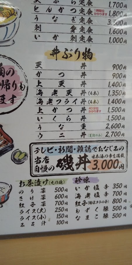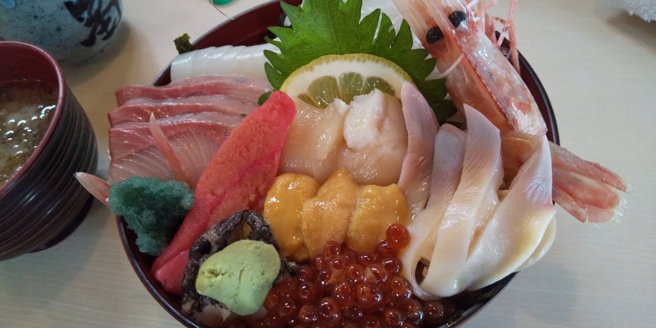 夜はいい感じの寿司店です。岩内近海でとれた磯丼は3000円でおなか一杯。