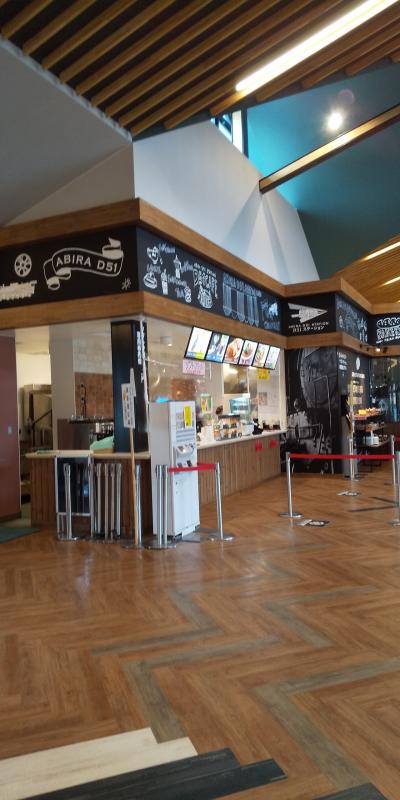 道の駅安平内のカフェ兼レストランです。食券を買ってから受けとるセルフサービス式で、併設のベーカリーとは会計が別。ドライバーさんの休憩所でもあるので一般的なカレーや麺類等がありテイクアウト可能。ソフトクリームはD51の煙を思わせる灰色や特産のカンロソフトがあります。出来たばかりの新しい建物で鉄道博物館のなかで食事ができます