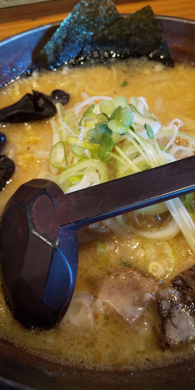 ススキノ交差点からすぐ、グリーンビルの半地下みたいな通路に入ると新ラーメン横丁で数件のラーメン店がありその通路の一番奥にある。こちらのラーメンはスープと麺の温度差が呑んだ後の閉めに最高、やや硬めのゆで方もよい。値段も控えめ