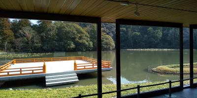 大きな窓できれいな建物があり池を眺めていると癒されます- 旅行時期