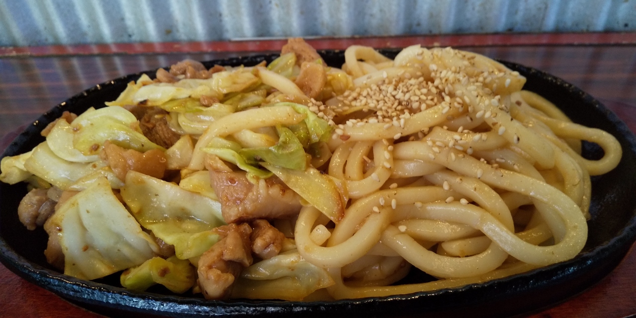 うどんかご飯を選べます。うどんなら焼うどんのような食べ物で焼うどんに鶏肉が入ったB級グルメ。マスターから地元の話を聞くと面白いお店です。営業時間は確認がいります- 旅行時期