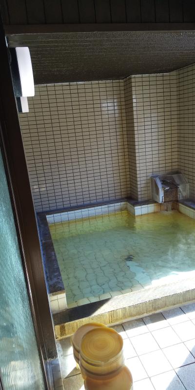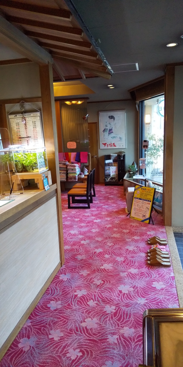 コロナの影響で男女別内湯をなくしてどちらか空いているほうにドア前にスリッパを置き