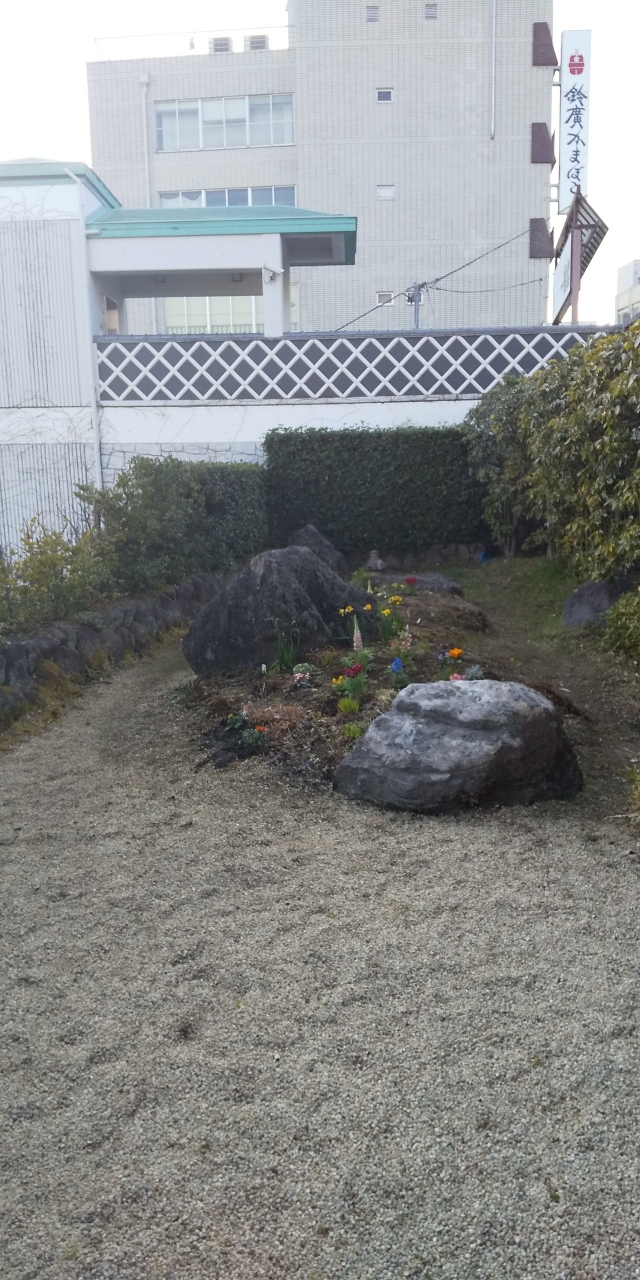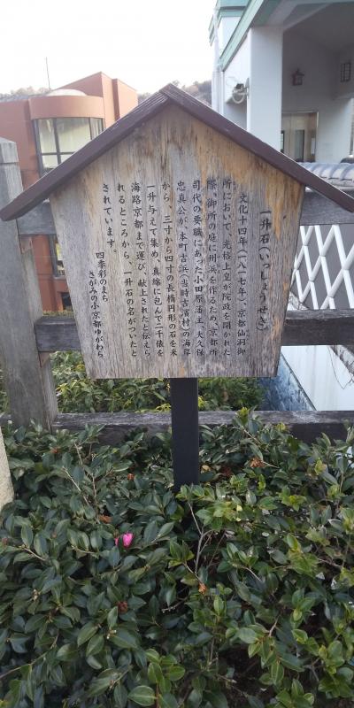 JR湯河原駅前交差点にあり、改札口をでると目の前に見えます。信号機のある交差点を越えるとベンチのような休憩スペースみたいな公園があり、その下に石というか岩が置いてあります。横には温泉がチョロチョロとでています。階段を降りなければ石は観ることができません。