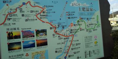 東海バスの土肥温泉バス停前の広場に櫓があり高いタワーのようや櫓がシンボルです。
