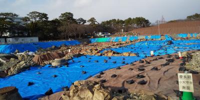 発掘現場は徳川家康港の銅像の浦手当たり。一般に公開されていますが一面ブルーシートに覆われています。周りを歩くことも可能です。どんな発見があるか今後が楽しみです- 旅行時期