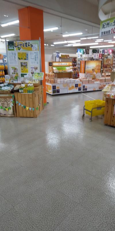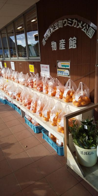 熊野灘を望む七里ヶ浜沿いにある道の駅で熊野市から車で15分程度南下した道沿いにあります。みかんの産直らしくオレンジ色の建物でよく目立ちます。道の駅としては大きな器で半分はスーパーマーケットです。なんでも買える便利なスーパーです