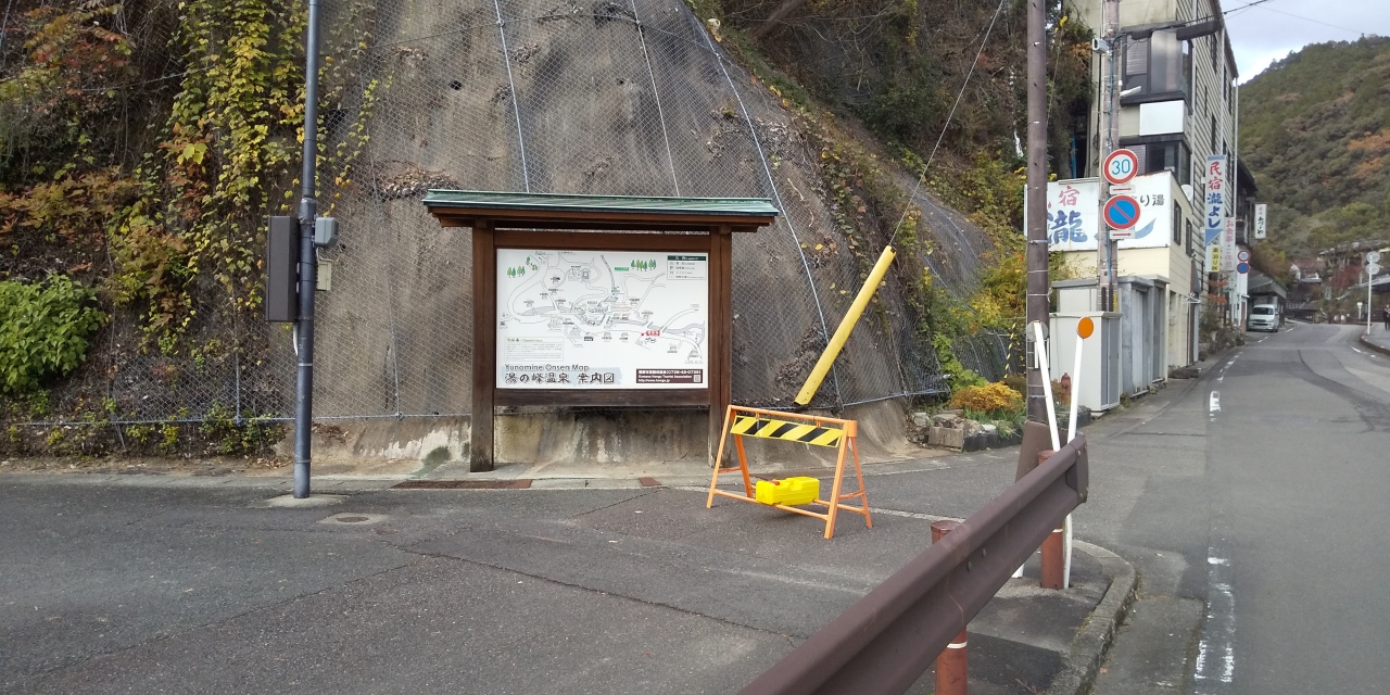 和歌山県の山奥にあるひなびた温泉街で渓谷の中。