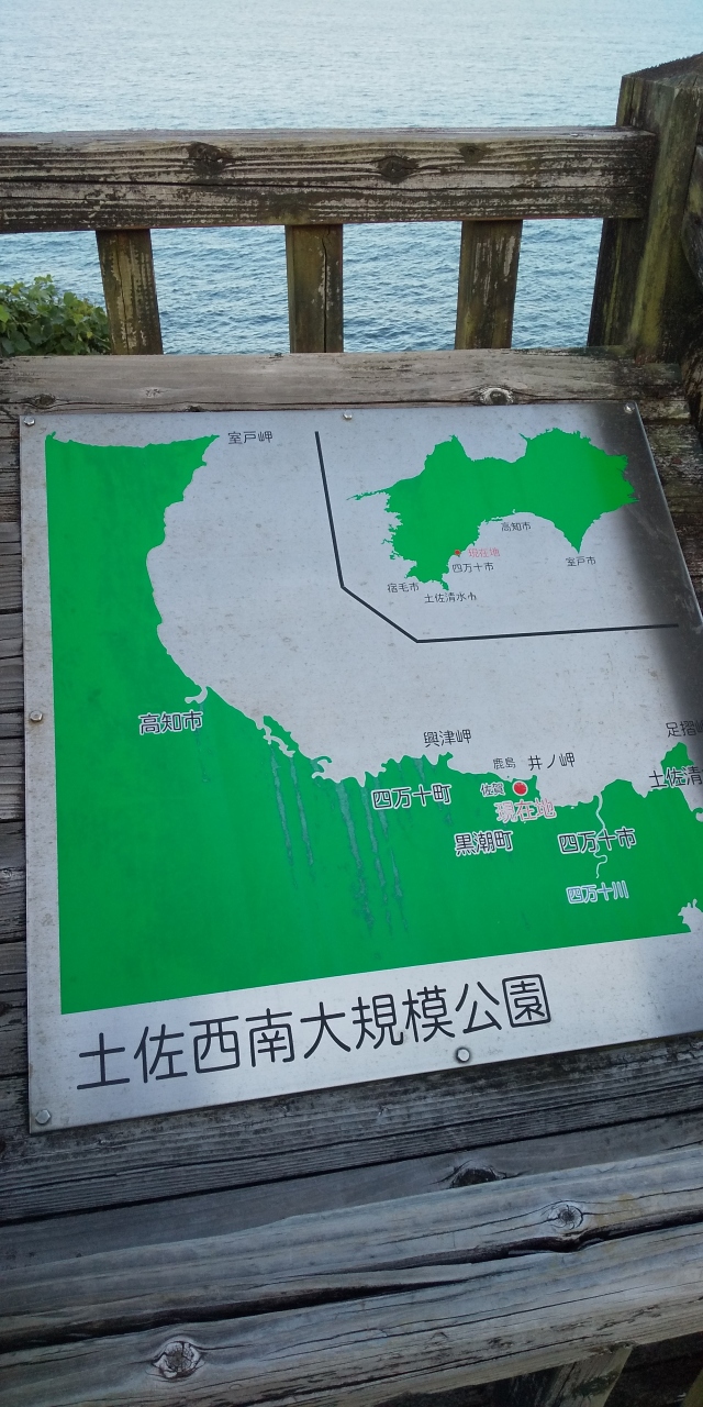 足摺岬の駐車場から岬先端部、灯台に向かう遊歩道沿いに看板があり