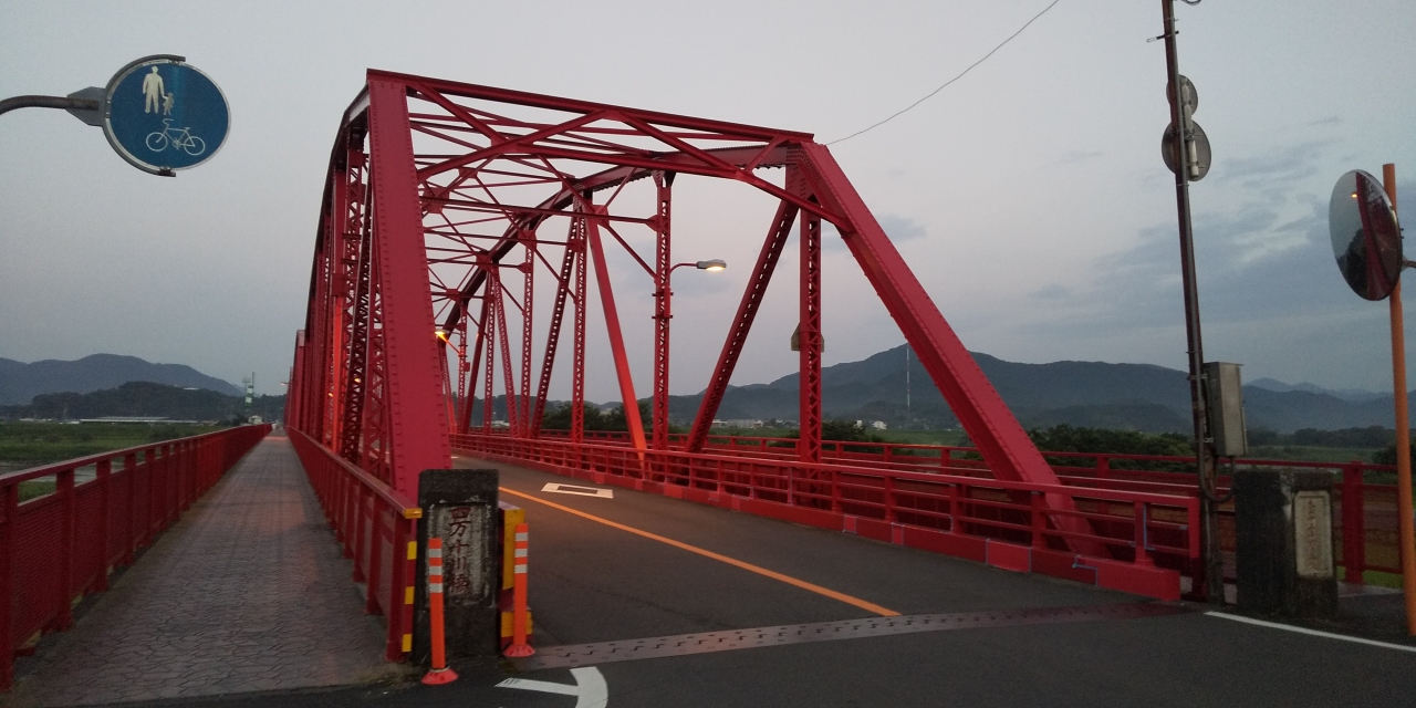 中村プリンスホテルからすぐの中村市街地郊外にかかる橋です。真っ赤な鉄橋。
