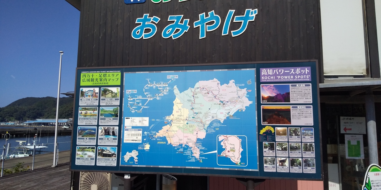 中村の市街地から四万十川沿いを足摺岬方面へ車を走らせるとると土佐清水市内に入るすぐ。道の駅のような建物でレストランの営業もしています。