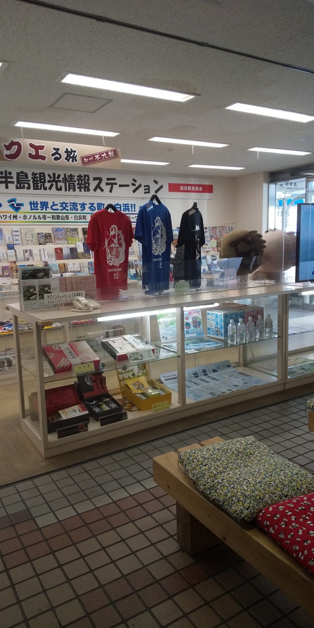JR白浜駅構内にある観光案内センターです。南紀白浜の温泉や見どころを紹介するだけではなく紀伊半島全体にある見どころ名所をナビしてくれる広いエリアに対する案内を「するところです。パンフレットが沢山あり物品の展示や販売もしています。温泉街から遠いですがJR利用客にはありがたいところです