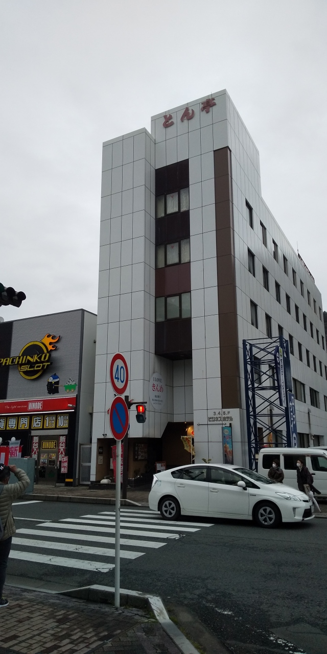 細いびるでおくが広いつくりのびるで1階が居酒屋で2かいが焼肉屋。